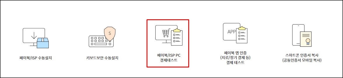 4. 페이북/ISP PC결제테스트를 눌러주세요.