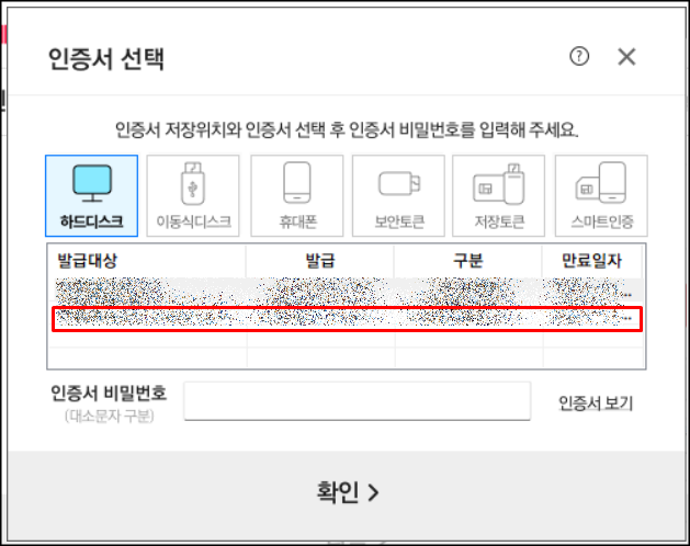 공인인증서가 준비됐다면 확인을 눌러주세요.