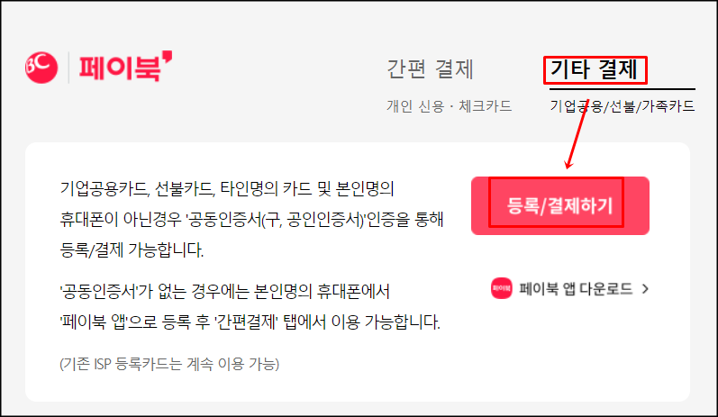 7. 기타 결제 → 등록/결제하기를 눌러주세요.