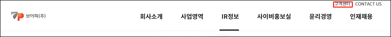 3. 브이피 홈페이지에 접속 후 상단에 있는 "고객센터"를 눌러주세요.