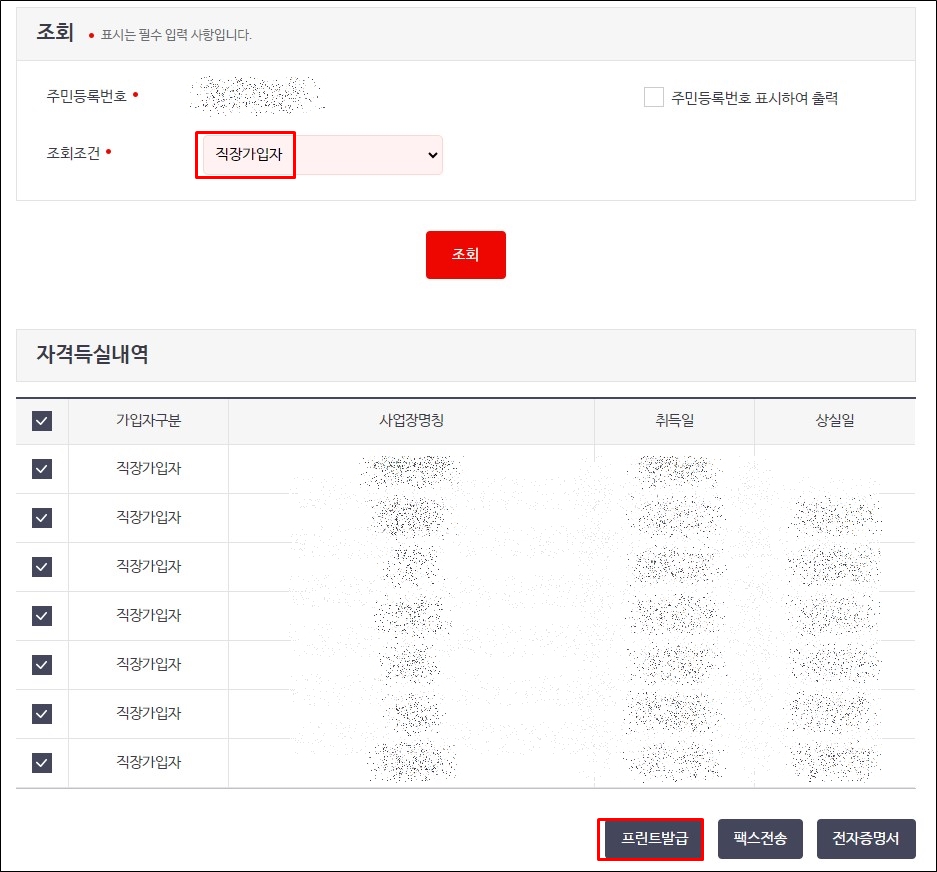 비밀번호를 입력하면 "건강보험 자격득실 확인서"를 확인할 수 있습니다.