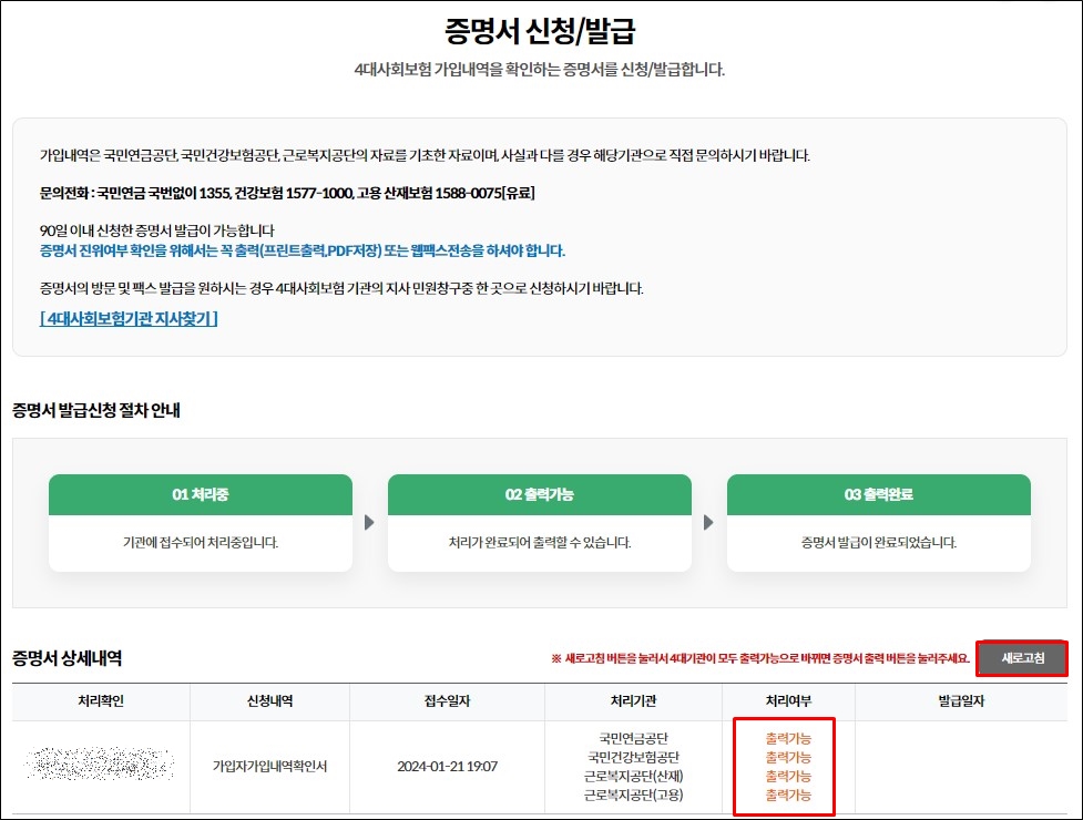 4대 사회보험 가입자 가입내역 확인서를 발급하여 확인하는 방법인데, 별도의 비용없이 빠르게 확인하여 출력 및 저장을 할 수 있습니다.